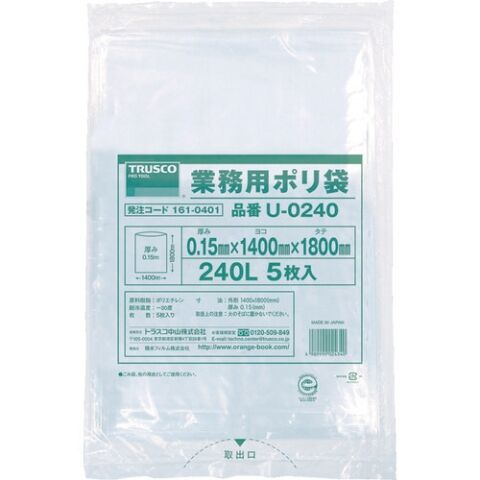 トラスコ中山 業務用ポリ袋0.15×240L(5枚入) トラスコ中山 U-0240 【返品種別B】