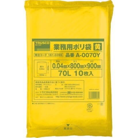 トラスコ中山 業務用ポリ袋 厚み0.04×70L 黄(10枚入) A-0070Y 【返品種別B】