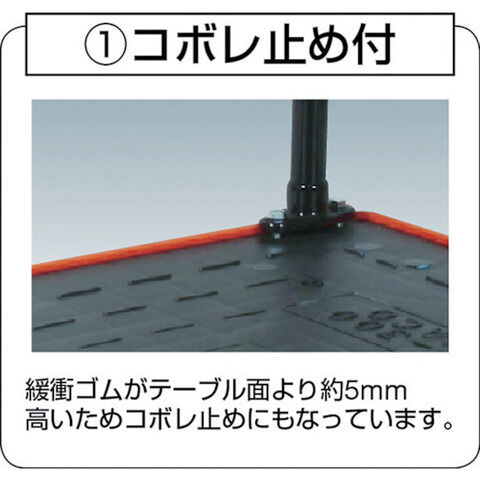 ◆緩衝ゴムがテーブル面より約5mm高いためコボレ止めにもなっています。