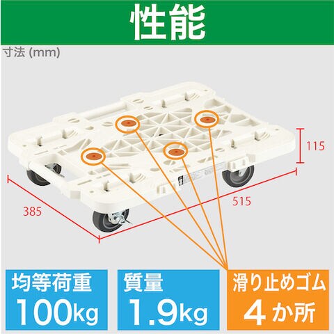 トラスコ中山 樹脂製平台車 ルートバンメッシュタイプ 515×385 自在側ストッパー付(白) MPK-500S-W 【返品種別B】