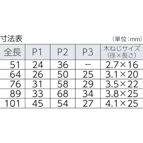 - 木ねじ径×長さ:2.7×16mm