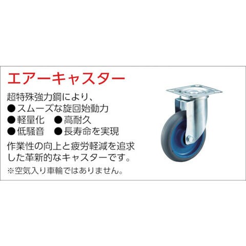 ◆メッシュ構造+エアーキャスターの採用により軽量化を実現しました。取り回しが軽く操作性・静音性に優れた台車です。