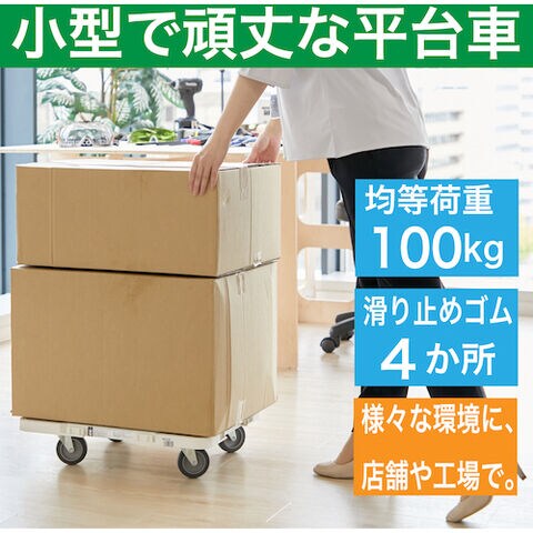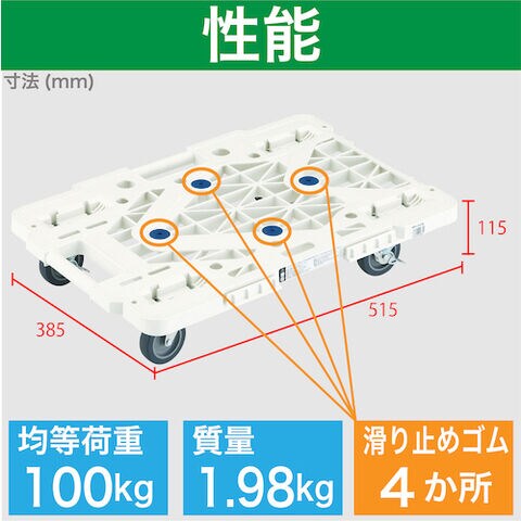 トラスコ中山 樹脂製平台車 ルートバンメッシュタイプ 515×385 4輪自在 ストッパー付(白) MPK-500JS-W 【返品種別B】