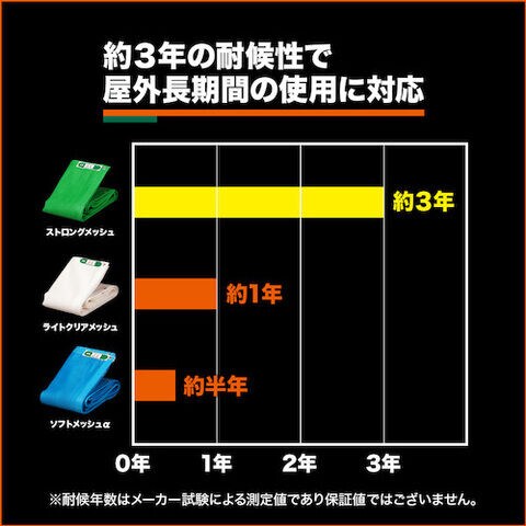 ◆塩ビ2類メッシュに比べ約15%軽量で、約3年の耐候性能を持った建築足場養生メッシュです。