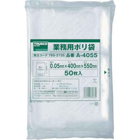 トラスコ中山 小型ポリ袋 縦550×横400×T0.05 50枚入 透明 A-4055 【返品種別B】