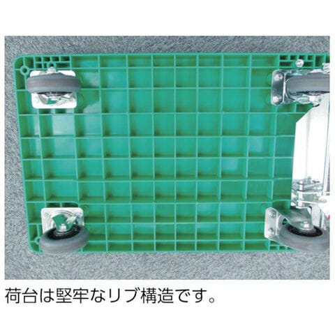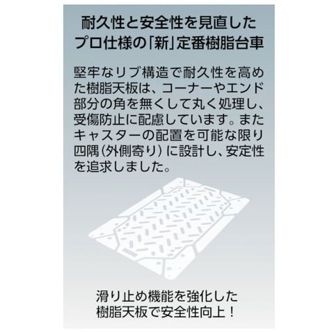 ◆堅牢なリブ構造で耐久性に優れた樹脂台車です。