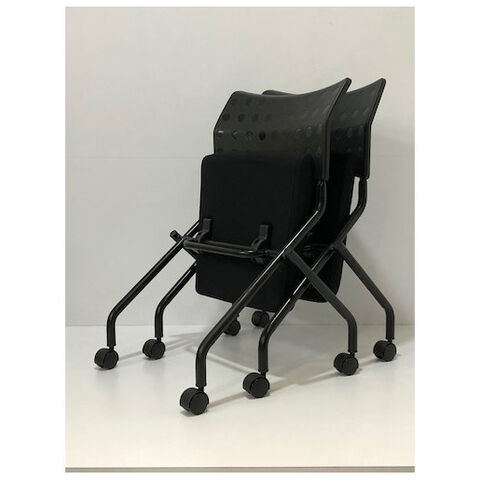 ◆座面を持ち上げてスライドさせるだけで簡単にスタッキングできる会議用チェアです。