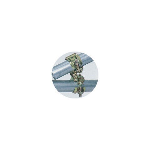 ◆単管と単管で小屋等の組立時の垂直パイプに補強用斜め2方向を内側固定するクランプです。