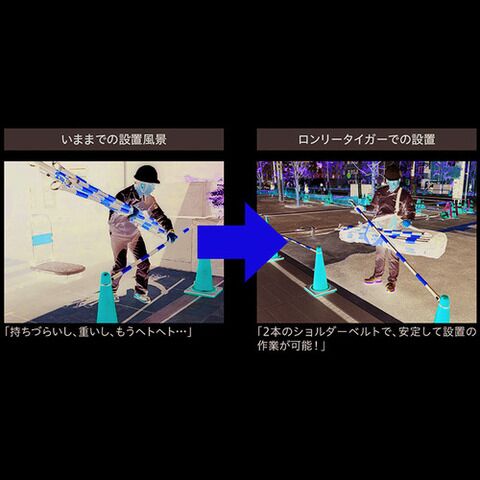 ◆多量のガードバーを収納できるため、運搬・安全コーンへの設置作業負担が軽減できます。(最大収納目安:約25本)