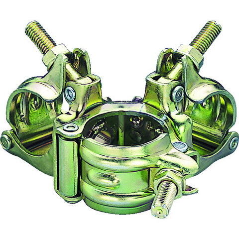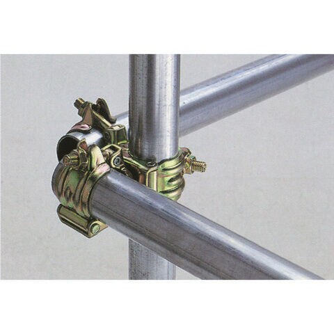 ◆単管で小屋などの組立時の垂直パイプに水平2方向を外側固定するクランプです。