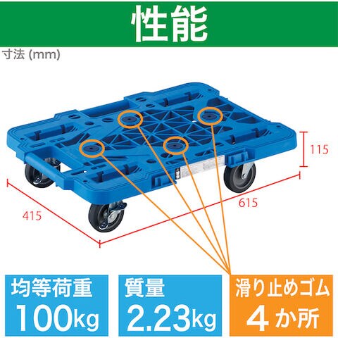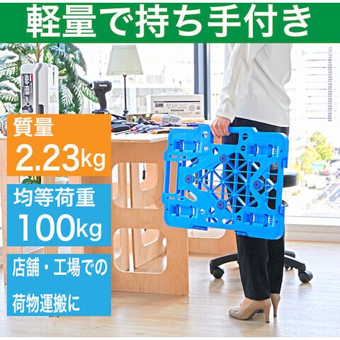 トラスコ中山 樹脂製平台車 ルートバンメッシュタイプ 615×415 4輪自在 ストッパー付(青) MPK-600JS-B 【返品種別B】のレビュー
