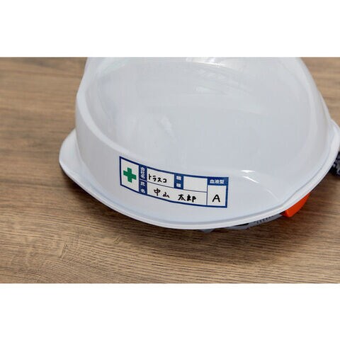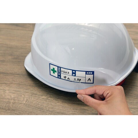 ◆ヘルメット用の会社名、氏名、血液型を記載するステッカーとして。