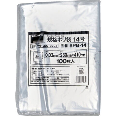 トラスコ中山 規格ポリ袋14号 縦410×横280×t0.03 100枚入(透明) SPB-14 【返品種別B】