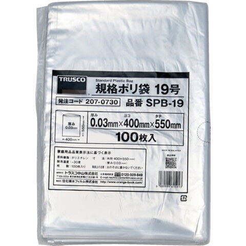 トラスコ中山 規格ポリ袋19号 縦550×横400×t0.03 100枚入(透明) SPB-19 【返品種別B】