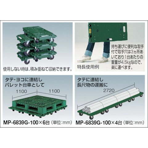 トラスコ中山 マルチキャリー連結くん 680×390 SUS金具 ウレタン車 MP-6839SU-100 【返品種別B】