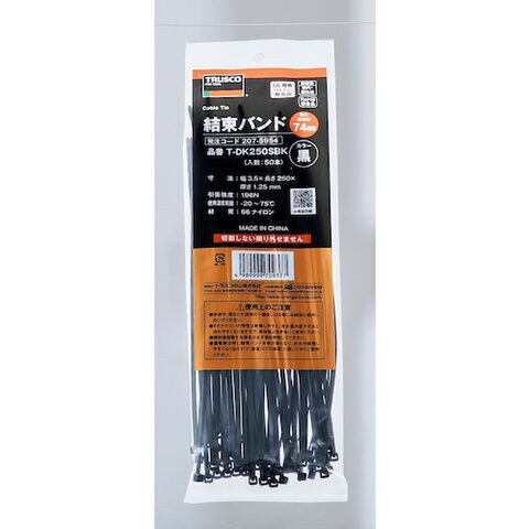 トラスコ中山 結束バンド(耐候性) 幅3.5×250mm 50本入り TDK250SBK 【返品種別B】