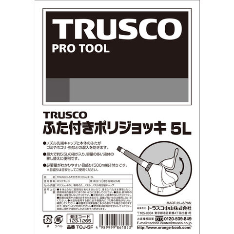 トラスコ中山 ふた付きポリジョッキ 5L トラスコ中山 TOJ-5F 【返品種別B】