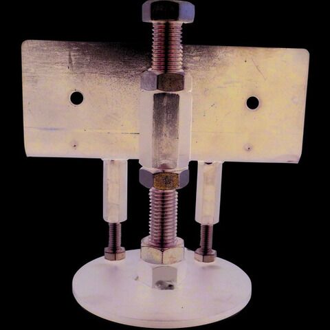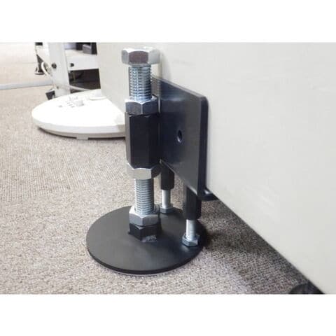 ◆床に接着した円盤に連結されたL板で設備・装置の底面を接着固定します。