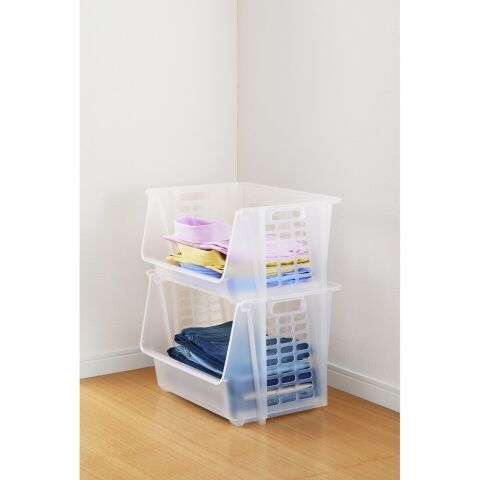 サンカ 収納ボックス 約 幅45×奥行34×高さ23cm ナチュラ ストックス 浅型(クリア) 収納ケース NST-23CL 【返品種別A】