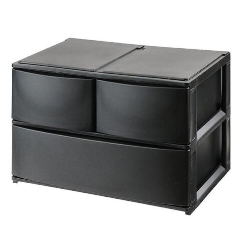 サンカ 収納ケース 引き出し 幅39×奥行26.5×高さ26.5cm ワイド 深ショート2 深1段(ブラック) 収納ケース NPDW-BBK 【返品種別A】