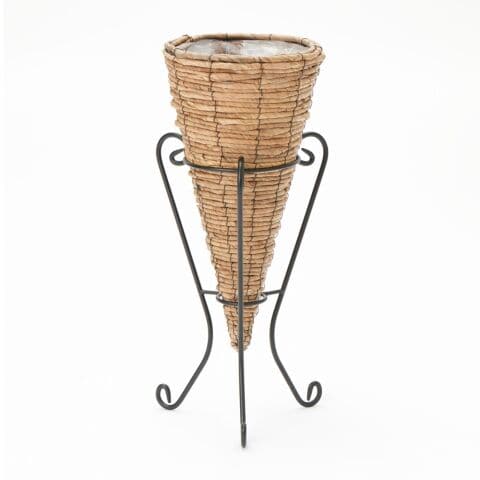 ◆スチール製本体にナチュラルなバスケットがセットされたポットスタンドです。