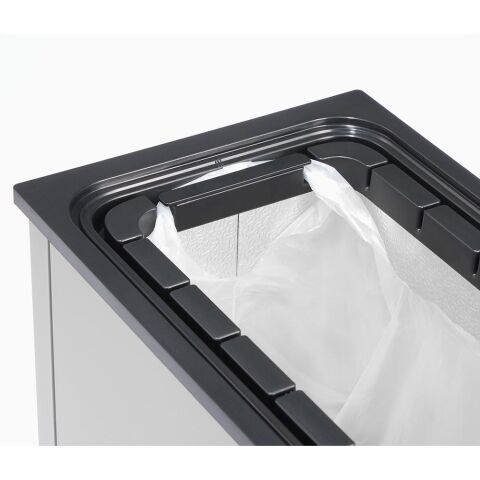多くのユーザー様からご要望の多かった、ごみ袋の取り付け、取り外し機構を改良。 脱着も片手でスイスイ行えるようになりました。取り付けは取っ手の部分に掛けるだけ。