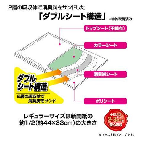 ◆2層の吸収体でサンドした消臭炭パワーでニオイをしっかり消臭します。