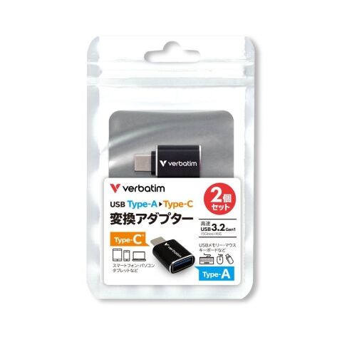 Verbatim|バーベイタム USB Type-A → Type-C 変換アダプター(ブラック・2個入) HKATOCZX2V1 【返品種別A】
