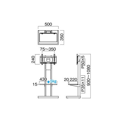 • 総耐荷重:35kg(棚板5kg以下、取付テレビ30kg以下)