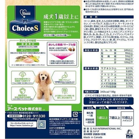 アース・ペット ファーストチョイス choiceS 成犬1歳以上に 1.2kg(600g×2) FCセイケン1サイイジヨウニ1.2KG 【返品種別B】
