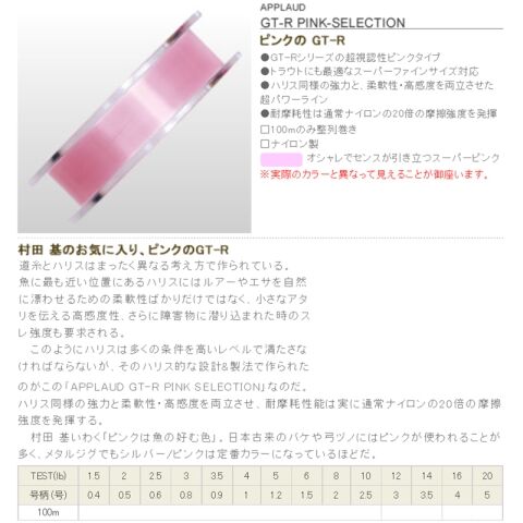 サンヨーナイロン GT-R ピンクセレクション 300m スーパーピンク(5号/20lb.test) APPLAUD PINK-SELECTION ナイロンライン GT-R ピンクセレクション 300m(5ゴウ/20lb) 【返品種別B】
