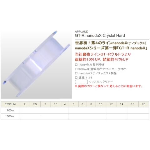 サンヨーナイロン GT-R nanodaX クリスタルハード 300m クリスタルクリア(3.5lb/0.9号相当) APPLAUD Crystal Hard ナイロンライン GT-R nanodaX クリスタルハード 300m(3.5lb/0.9ゴウ) 【返品種別B】