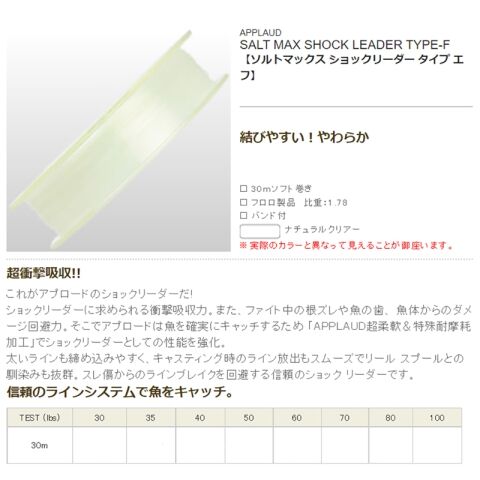 サンヨーナイロン ソルトマックス ショックリーダー タイプF 30m ナチュラルクリア(50lb/14号相当) APPLAUD フロロリーダー ソルトマックス ショックリーダー タイプF 30m(50lb/14ゴウ) 【返品種別B】