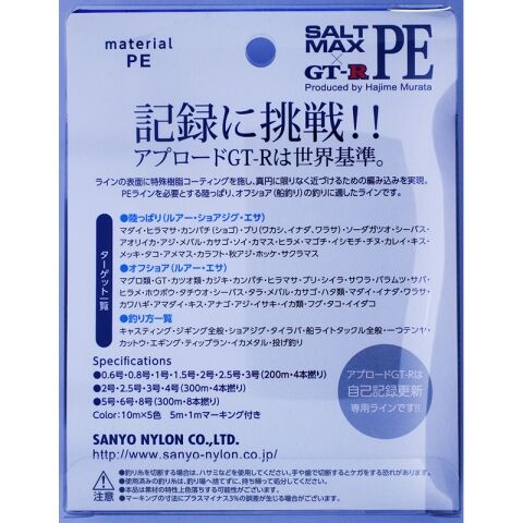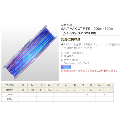 サンヨーナイロン ソルトマックス GT-R PE 200m 10m×5色(3号/49lb.test) APPLAUD PEライン ソルトマックス GT-R PE 200m(3ゴウ/49lb) 【返品種別B】