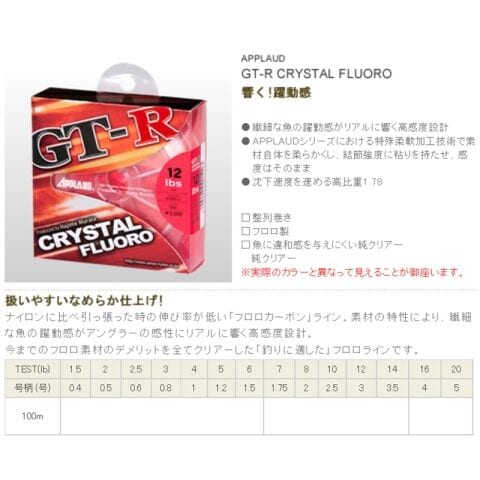 サンヨーナイロン GT-R クリスタルフロロ 100m 純クリア(1.2号/5lb) APPLAUD CRYSTAL FLUORO フロロライン GT-R クリスタルフロロ 100m(1.2ゴウ/5lb) 【返品種別B】のレビュー