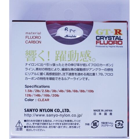 サンヨーナイロン GT-R クリスタルフロロ 100m 純クリア(5号/20lb) APPLAUD CRYSTAL FLUORO フロロライン GT-R クリスタルフロロ 100m(5ゴウ/20lb) 【返品種別B】