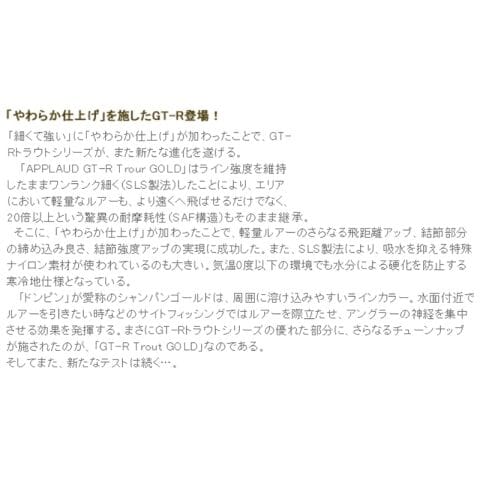 サンヨーナイロン GT-R トラウトゴールド 100m シャンパンゴールド(0.54号/2.5lb.test) APPLAUD TROUT GOLD ナイロンライン GT-R トラウトゴールド 100m(0.54ゴウ/2.5lb) 【返品種別B】