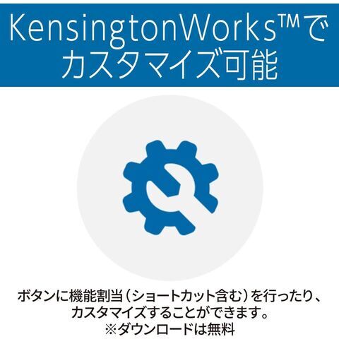 KensingtonWorksをダウンロードしてボタンに機能割当(ショートカット含む)を行ったり、カーソルやスクローリングのスピードをカスタマイズすることができます。※ダウンロードは無料