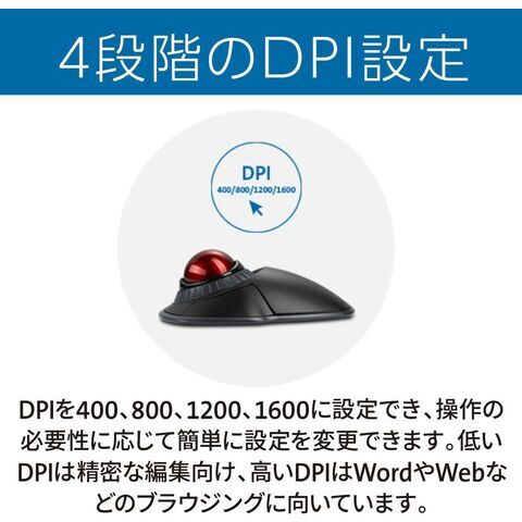 DPI を400、800、1200、1600に設定でき、操作の必要性に応じて簡単に設定を変更できます。低いDPI は精密な編集向けで、高いDPI はWord やWeb などのブラウジングに向いています。
