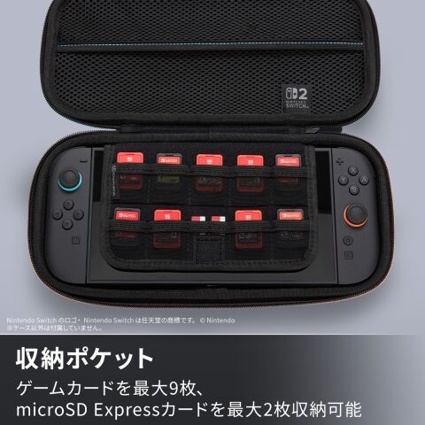 ゲームカードを最大9枚、microSD Expressカードを最大2枚収納可能な収納ポケットの裏側にはパットが付いていて、画面を保護します。