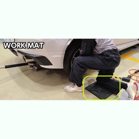 タイヤ交換、ブレーキ、足回り整備時など、膝、足首の痛みや、衣類の汚れを防ぎます。