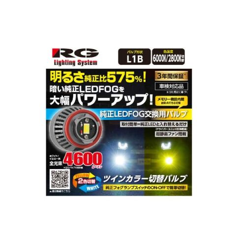 RACING GEAR 純正LEDFOG バルブ形状:L1B ツインカラーモデル/6000K(ホワイト)切替2800K(イエロー)車検対応品(12V専用) レーシングギア RGH-P903 【返品種別A】