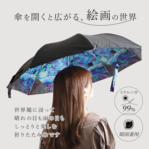 ◆名画の世界観に浸って、晴れやかな気持ちでお出かけ♪名画シリーズの晴雨兼用折りたたみ傘