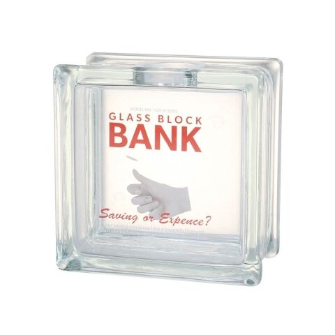 ◆利便性の高い建材のガラスブロックをよりインテリアとして置くためにデザインを施した貯金箱。