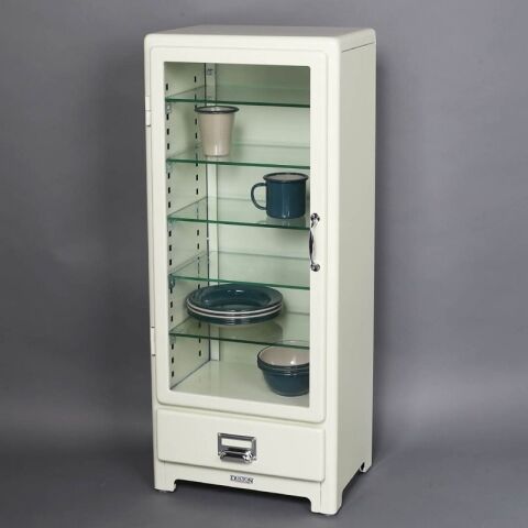 ◆顔となる表面を大胆にもガラス扉で仕上げたスチール製キャビネット。