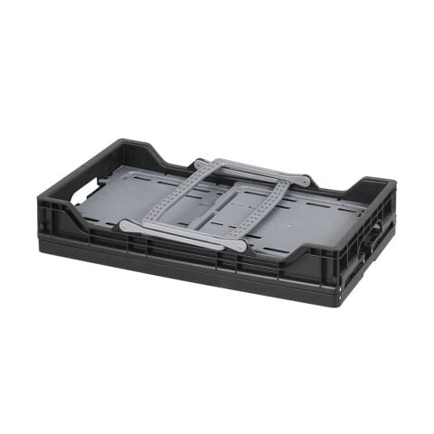 ◆特徴的なツートンカラーとキャラクターロゴが目を引く、取っ手付きの折りたたみコンテナ。
