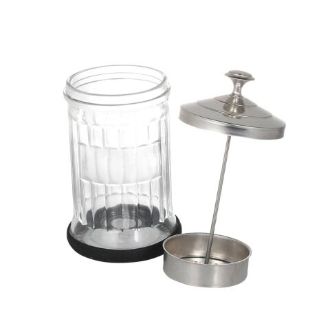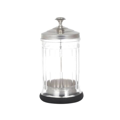 ◆蓋の取手を引き上げることで、細長いものの出し入れができるガラス容器。