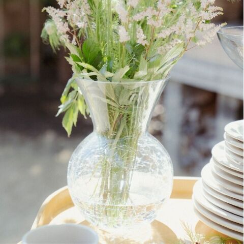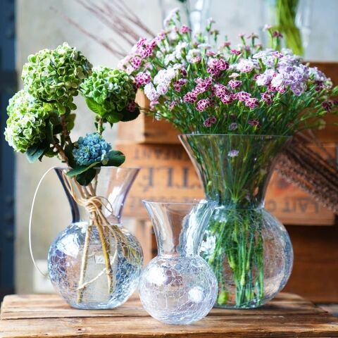 ◆ひび割れ模様とクリアガラスが織り成すコンビネーションが特徴的なフラワーベース。