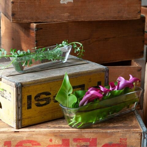 ◆ボートのような形状が特徴的な横型フラワーベース。