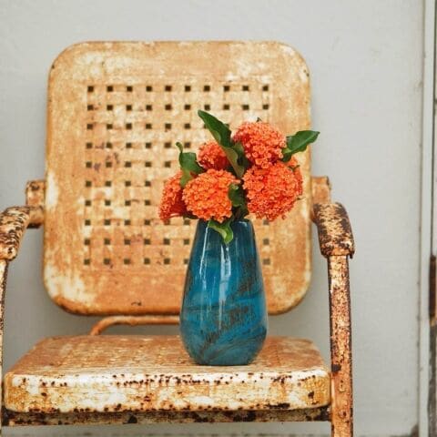 ◆鮮やかな色合いのマーブル模様が目を惹くフラワーベース。